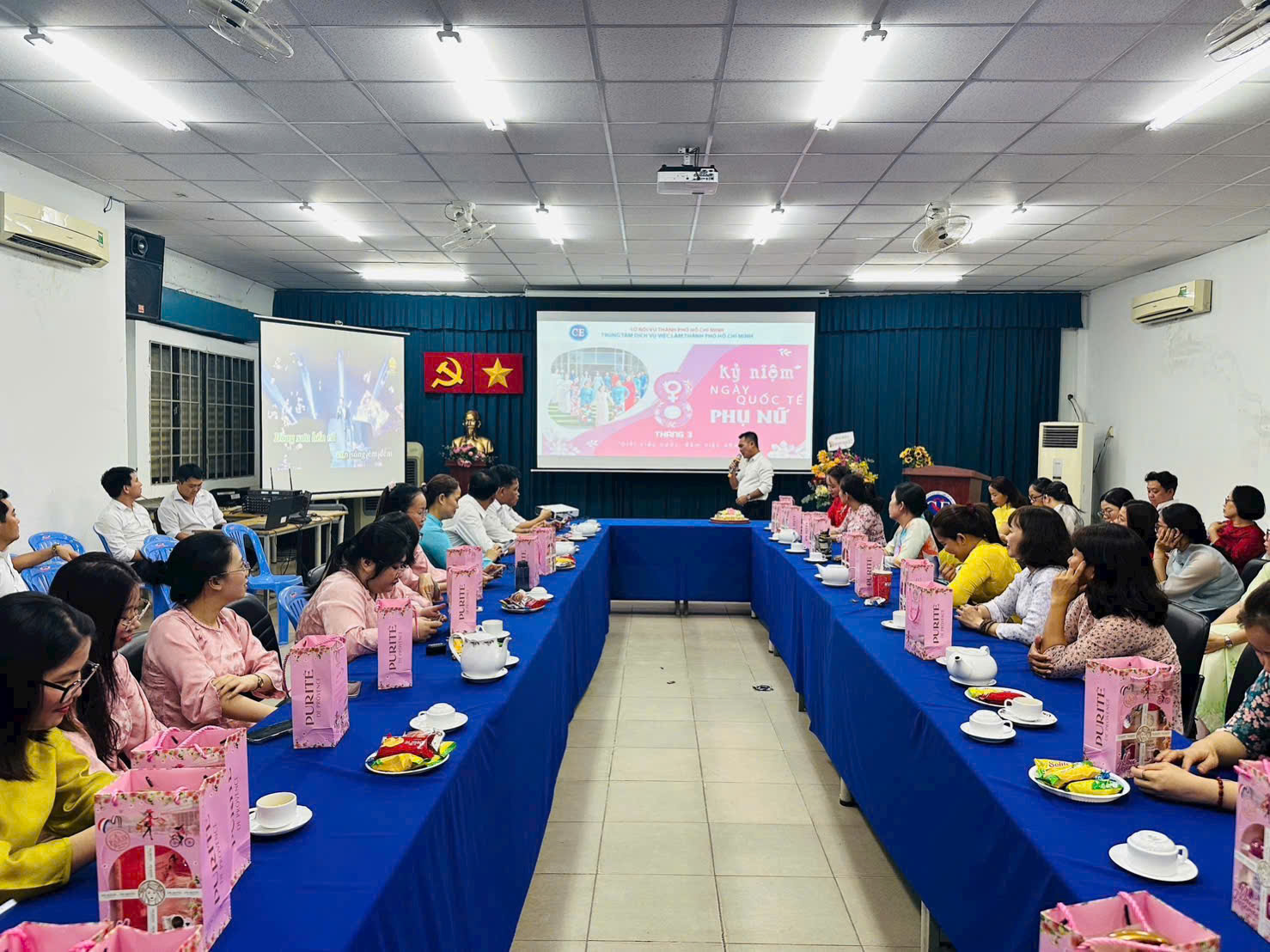 Nhân dịp này, thay mặt cho phái mạnh của Trung tâm Dịch vụ việc làm TP.HCM, chúng tôi xin gửi lời chúc tốt đẹp nhất đến toàn thể chị em phụ nữ. Chúc các chị em luôn rạng rỡ như hoa, mạnh mẽ như sóng và luôn tìm thấy hạnh phúc trong từng phút giây của cuộc sống.