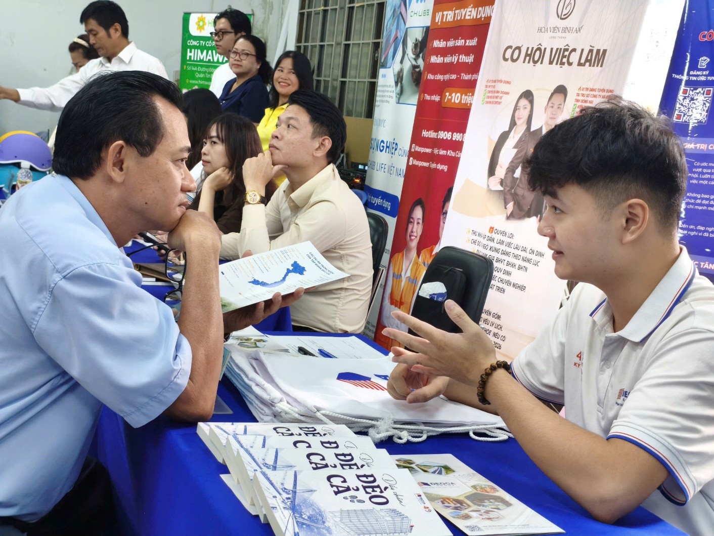 Ông Hồ Đắc Đăng Khoa – Phó Giám đốc Nhân sự Công ty Cổ phần Tập đoàn Đèo Cả cho biết: “Hiện nay công ty chúng tôi có hơn 8.000 lao động và trong thời gian tới dự kiến tuyển thêm khoảng 2.500 lao động với nhiều trình độ khác nhau, từ lao động phổ thông đến đại học, cao học và thậm chí cả tiến sĩ. Công ty luôn đảm bảo đầy đủ quyền lợi cho người lao động theo quy định của pháp luật cũng như các chế độ đặc thù của doanh nghiệp. Khi tham gia Ngày hội việc làm hôm nay, tôi nhận thấy nguồn ứng viên rất dồi dào và đa dạng về trình độ, giới tính và độ tuổi. Đây đều là những người có nhu cầu tìm việc thực sự nên quá trình trao đổi diễn ra nhanh chóng, giúp doanh nghiệp dễ dàng lựa chọn ứng viên phù hợp.”